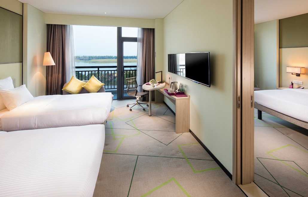 酒店介绍:合肥融创美居酒店拥有577间带有私人阳台的现代客房和套房,为休闲和商务客人提供完美的入住体验。酒店距离合肥南站和市中心仅10分钟和20分钟的车程,1小时及2小时高铁到南京和上海。绝佳的地理位置,紧邻巢湖,融创乐园,水世界,电影世界和融创茂,既可以感受活跃动感的都市氛围,同时可以享受大自然的静谧,酒店餐厅和酒吧提供丰富多样的本地美食,给您带来吃喝玩乐为一体的精彩体验。